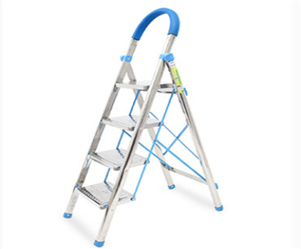 不锈钢D管设计,踏板带防滑花纹,拉杆结实,带防滑扶手,底部为防滑橡胶梯脚。每级高度比例合理,方便使用。